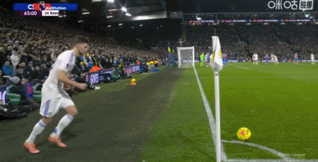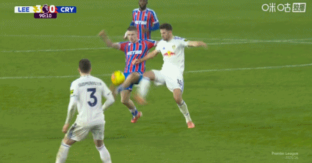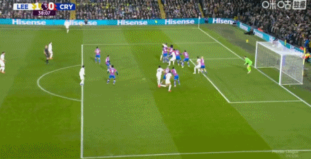 第45+4分钟,比约尔助攻,勒温头球破门完成双响,利兹联2-0水晶宫